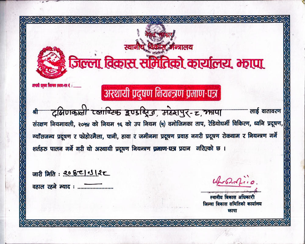 production standards, Dakshinkali plastic today is one of the largest producer of water storage